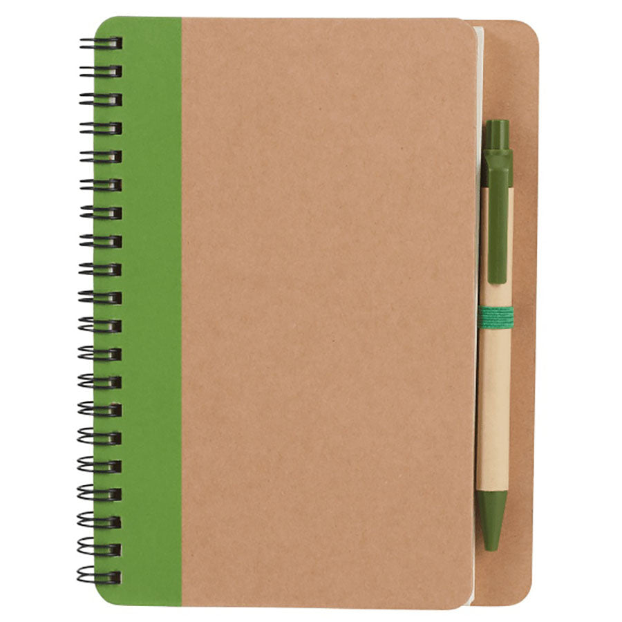 Bullet Green 5'' x 7'' Eco-Friendly Spiral Notebook with Pen