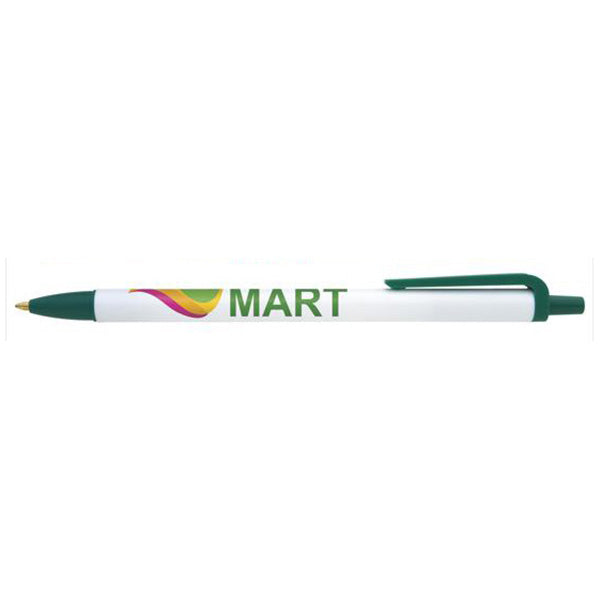 Good Value Green with Black Ink Contender Pen with a corproate brand is a cost effective way to showcase your brand or organization for the entire use of the pen. The practical design of this pen with a white barrel and contrasting trim means your name or logo will be the star. Great for giveaways, new clients, or general daily use. Order today.