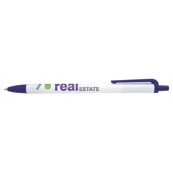 Good Value Purple with Blue Ink Contender Pen with a corproate brand is a cost effective way to showcase your brand or organization for the entire use of the pen. The practical design of this pen with a white barrel and contrasting trim means your name or logo will be the star. Great for giveaways, new clients, or general daily use. Order today.The minimum order for this product is 500 pieces.