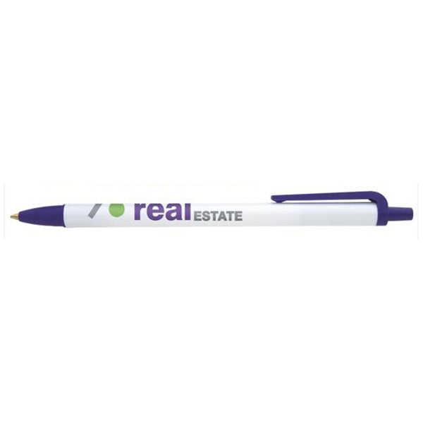 Good Value Purple with Black Ink Contender Pen with a corproate brand is a cost effective way to showcase your brand or organization for the entire use of the pen. The practical design of this pen with a white barrel and contrasting trim means your name or logo will be the star. Great for giveaways, new clients, or general daily use. Order today.The minimum order for this product is 500 pieces.