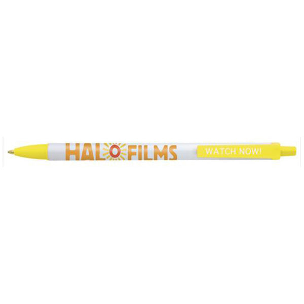 Good Value Yellow with Black Ink Contender Pen with a corproate brand is a cost effective way to showcase your brand or organization for the entire use of the pen. The practical design of this pen with a white barrel and contrasting trim means your name or logo will be the star. Great for giveaways, new clients, or general daily use. Order today.The minimum order for this product is 500 pieces.