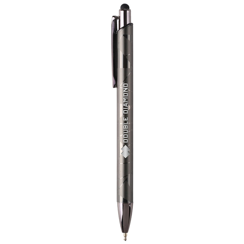 The Hub Pens Gunmetal Gemini Gem Pen with a corporate logo will help your brand shine with its luxurious matte and jewel tones and black accents. The large imprint area lets your logo be the star on this pen and stylus combo, which makes the workday a bit easier. Share at networking events, organized charity events, and anywhere else your company needs representation. Order today.The minimum order for this product is 100 pieces.