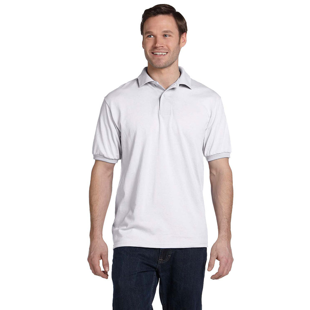 Hanes Men's White 5.2 oz. 50/50 EcoSmart Jersey Knit Polo