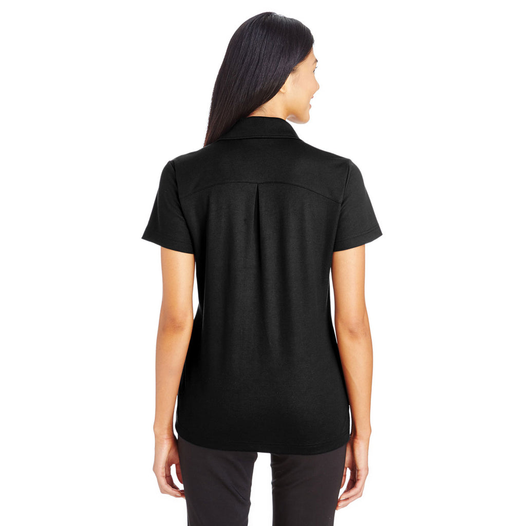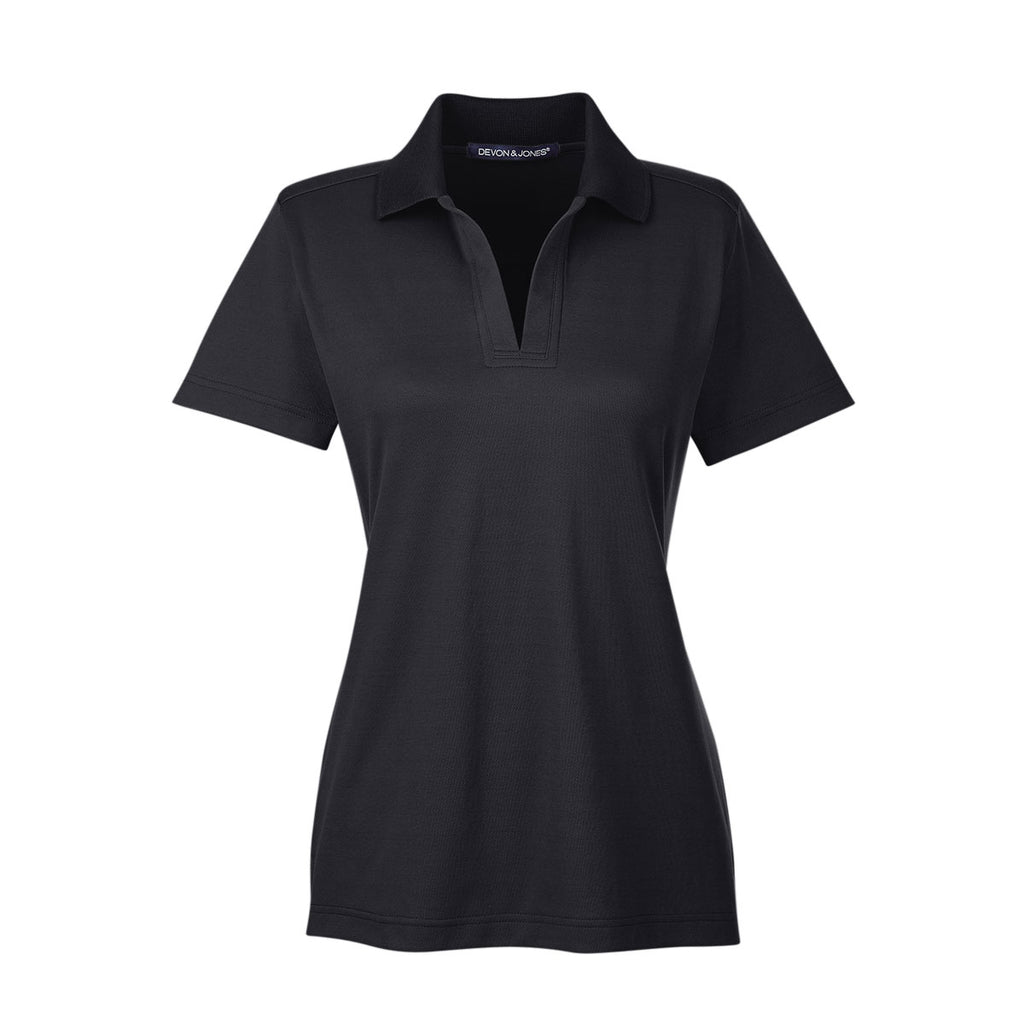 Before the next company golf outing, order the embroidered Devon & Jones Women's Black CrownLux Performance Polo for the members of your team. The front of the stylish polo contains 100% durable polyester, while the back side enjoys a cotton and polyester blend to enhance comfort. Moisture wicking technology keeps the skin dry and cool throughout every round. The matching flat knit collar will attract the attention of fellow players. Take advantage of the attention by adding a custom logo on the large imprint area. Luxury style and premium comfort make this polo your go to corporate apparel piece for your next company eventCorresponding Men's Style: Devon & Jones Men's Black CrownLux Performance Polo