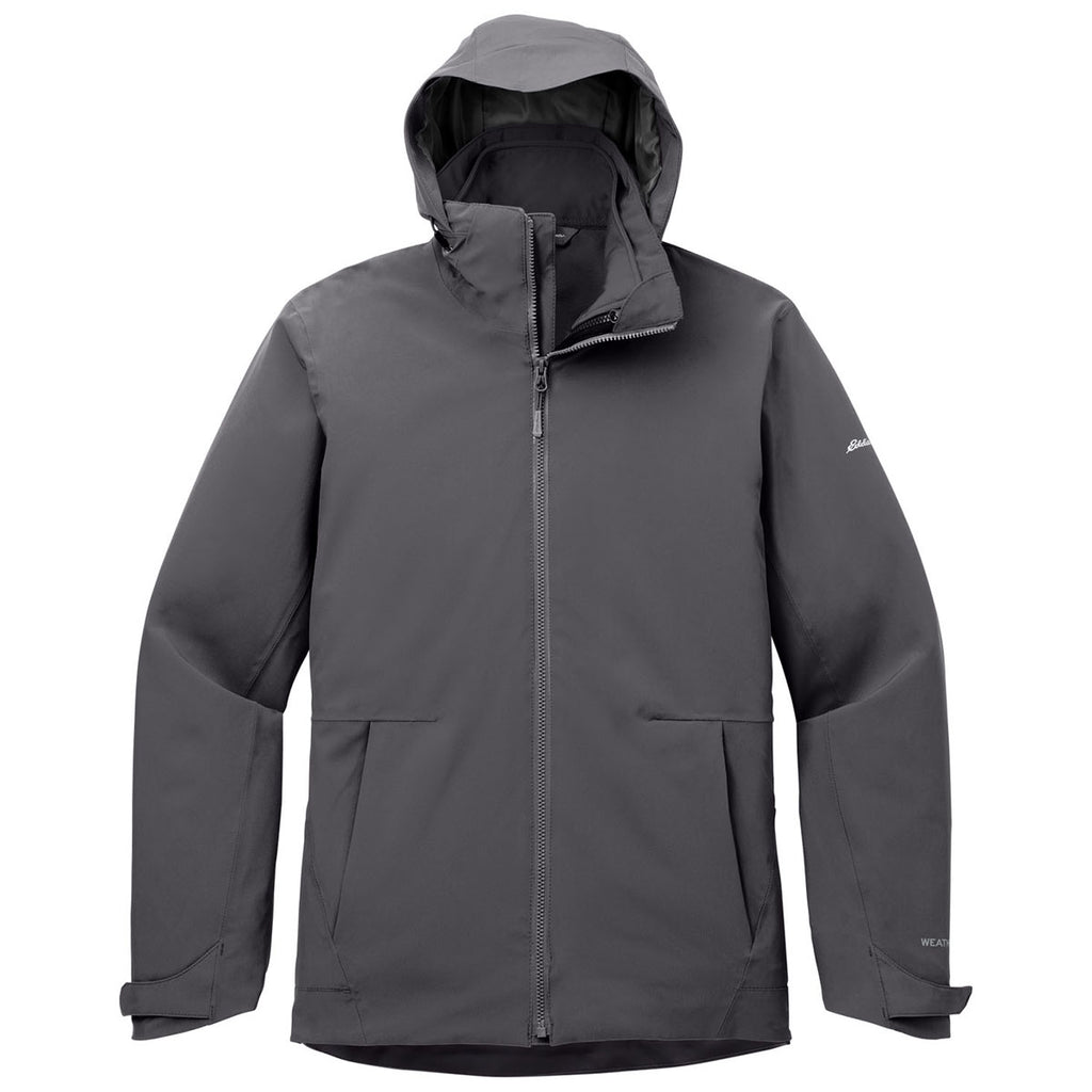 Adapt to life with a custom embroidery Eddie Bauer Men's Grey Steel/Metal Grey WeatherEdge 3-in-1 Jacket. Engineered to adapt to weather conditions of all types, this 3-in-1 system is seam sealed throughout to be waterproof, yet breathable. An inner soft shell provides warmth and water repellant technology keep you dry. This jacket is ready for the slopes, but can be-Zipped apart and worn as pieces. Add a company logo to the jacket to give as employee gifts that can be enjoyed year round. An adjustable hood with locking drawcord, adjustable cuffs, and-Zippered pockets create a purposeful jacket that looks great.