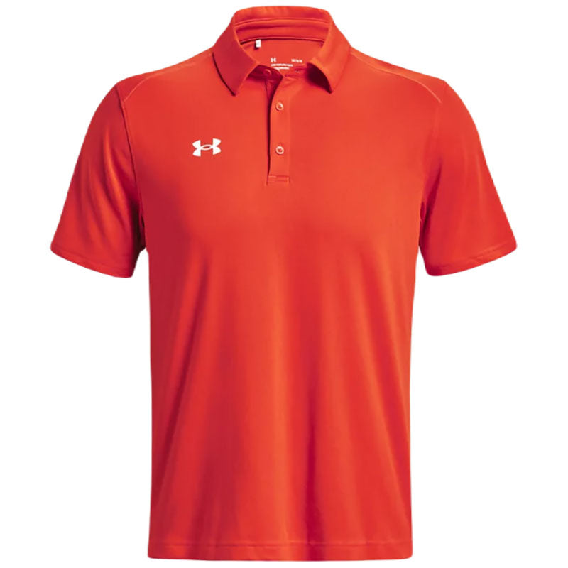 Add your business logo to the Under Armour Men's Dark Orange/White Tech Team Polo for a classic, athletic look the guys on your team will love to wear! With loose, textured fabric that breathes throughout the day, the corporate UA Tech polo for men helps deliver a comfortable feel with a clean-cut style. With your business logo embroidered clearly on the front, custom men's Under Armour polos can help your crew look united and ready for whatever comes next!