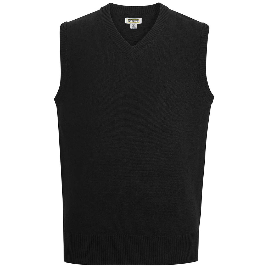 Edwards Men's Black Jersey Knit Acrylic Vest with a custom logo is a simple way to dress up an outfit. The midweight V-neck easily layers to create a comfortable look that remains professional. Great as a gift, especially for the holidays, this vest will upgrade any wardrobe. Place an order soon before these sell out.Highlights