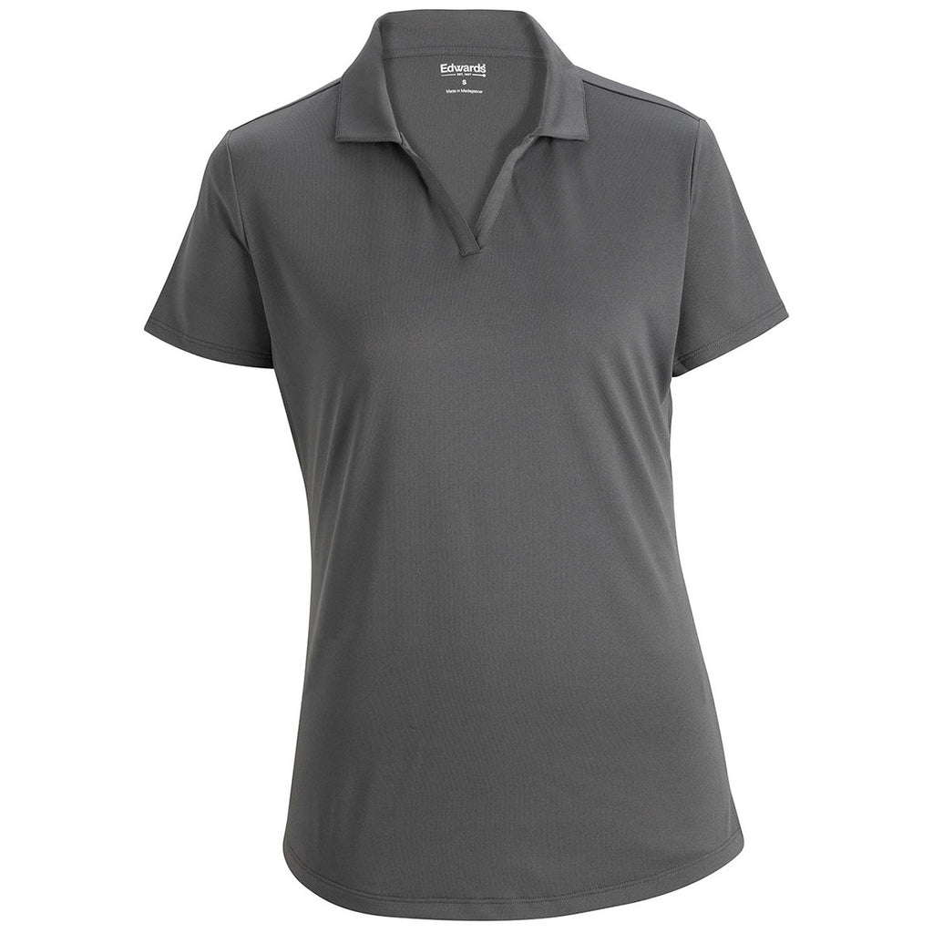 Choose custom embroidery for the Edwards Women's Steel Grey Ultimate Lightweight Snag-Proof Polo. This polo is ready for work and fun with moisture-wicking, antimicrobial design, UV protection, and it is snag-proof. Great for those in hospitality or healthcare, this polo is tailored with a built-in V-neck and short sleeves. Order today.Highlights