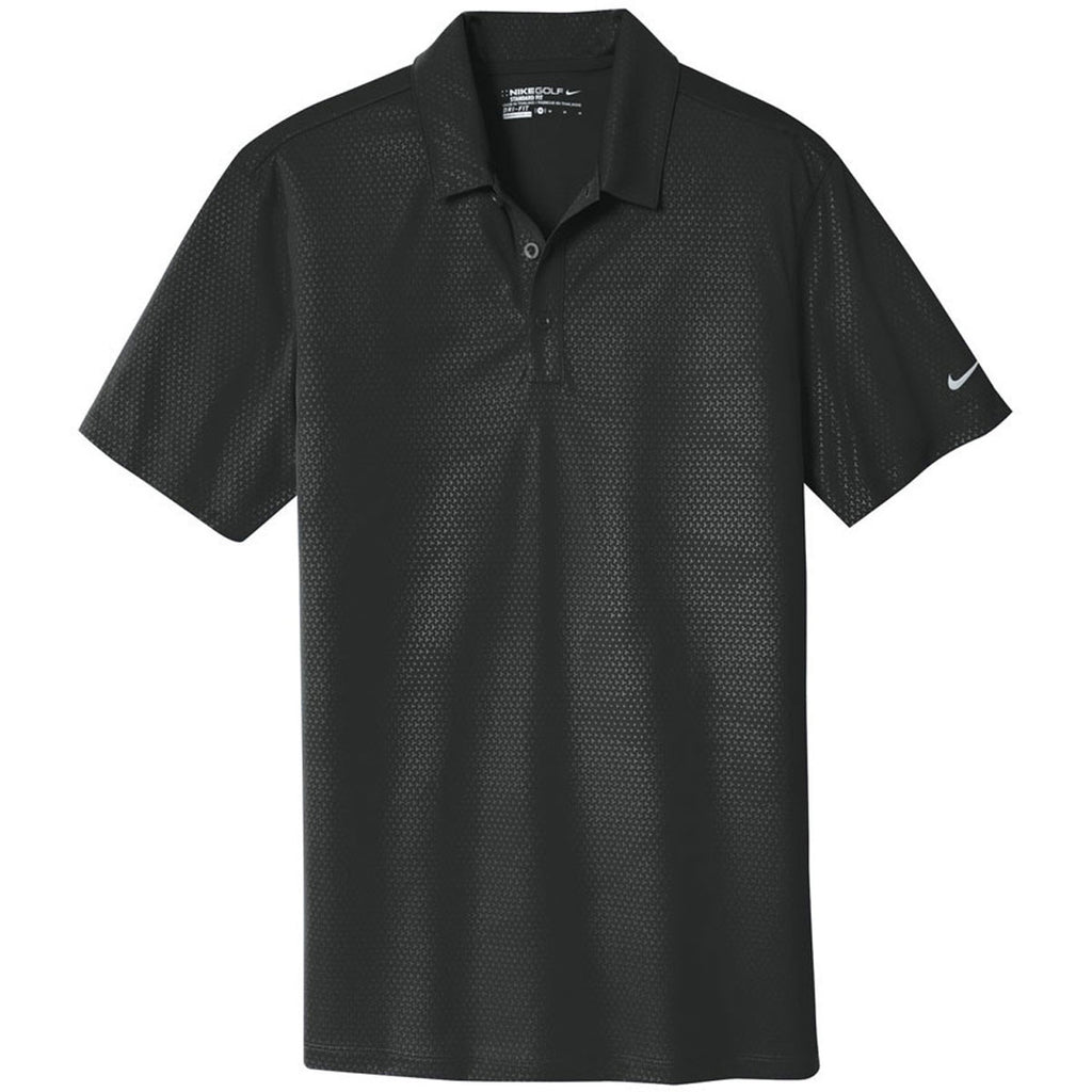 The company that invented the Swoosh heard throughout the world has produced an extensive line of versatile polos that cover all of the fashion bases. Nike Men's Black Golf Dri-FIT Embossed Tri-Blade Polo Dri-FIT technology ensures you enjoy supreme comfort, whether you're smacking a tennis ball down the baseline or swinging a golf club to reach a green in two. Design elements that turn heads include a self-fabric collar and a three-button placket. One hundred percent polyester endures the punishment absorbed by high-caliber athletic competitions. Attach your corporate logo to the polos to create more buzz about your company at sporting events.