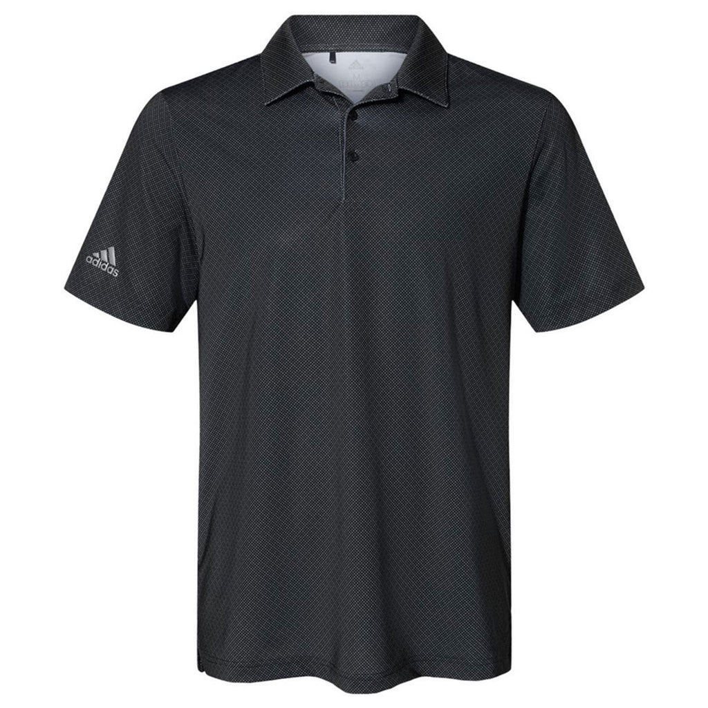 Enjoy a custom look with the Adidas Men's Black/White/Grey Three Diamond Dot Print Sport Shirt. A great sport shirt is a welcomed addition to any wardrobe and this unique dot print shirt is no exception. Add a company logo to serve as employee apparel or uniforms that are clean, crisp, and offer a classic look. Made of a recycled polyester and elastane blend this sport shirt has moisture management properties and a hydrophilic finish. The self collar and three button placket keeps the look professional and the UPF 50+ keeps you protected whether in the boardroom or on the back nine.