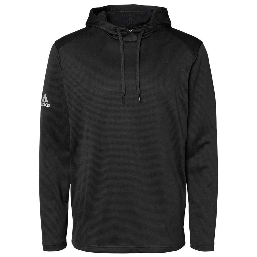 The adidas Men's Black Textured Mix Media Hooded Sweatshirt is anything but your average piece of athletic apparel. A special two-toned design combines colors and textures flawlessly to create a hooded sweatshirt with lots of visual impact. All it's missing is your company or team's custom logo.