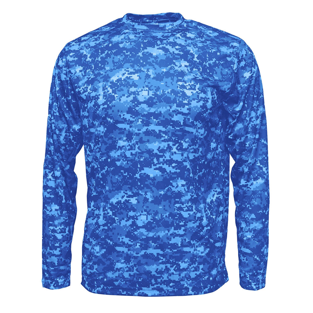 What could be more 'now' than a custom BAW Men's Blue Xtreme Tek Digital Camo Long Sleeve Shirt? And what could be better than a choice of different colors? This polyester shirt will be a favorite of the men who receive it. Every time they show it off they will be showing off your logo as well. It will be worn often because the fabric is so comfortable and has moisture wicking properties so it is very absorbent. The crew neck style has double needle hems which are very popular. Don't be surprised if current and prospective customers come back and ask for a second color 'for a friend'.Highlights