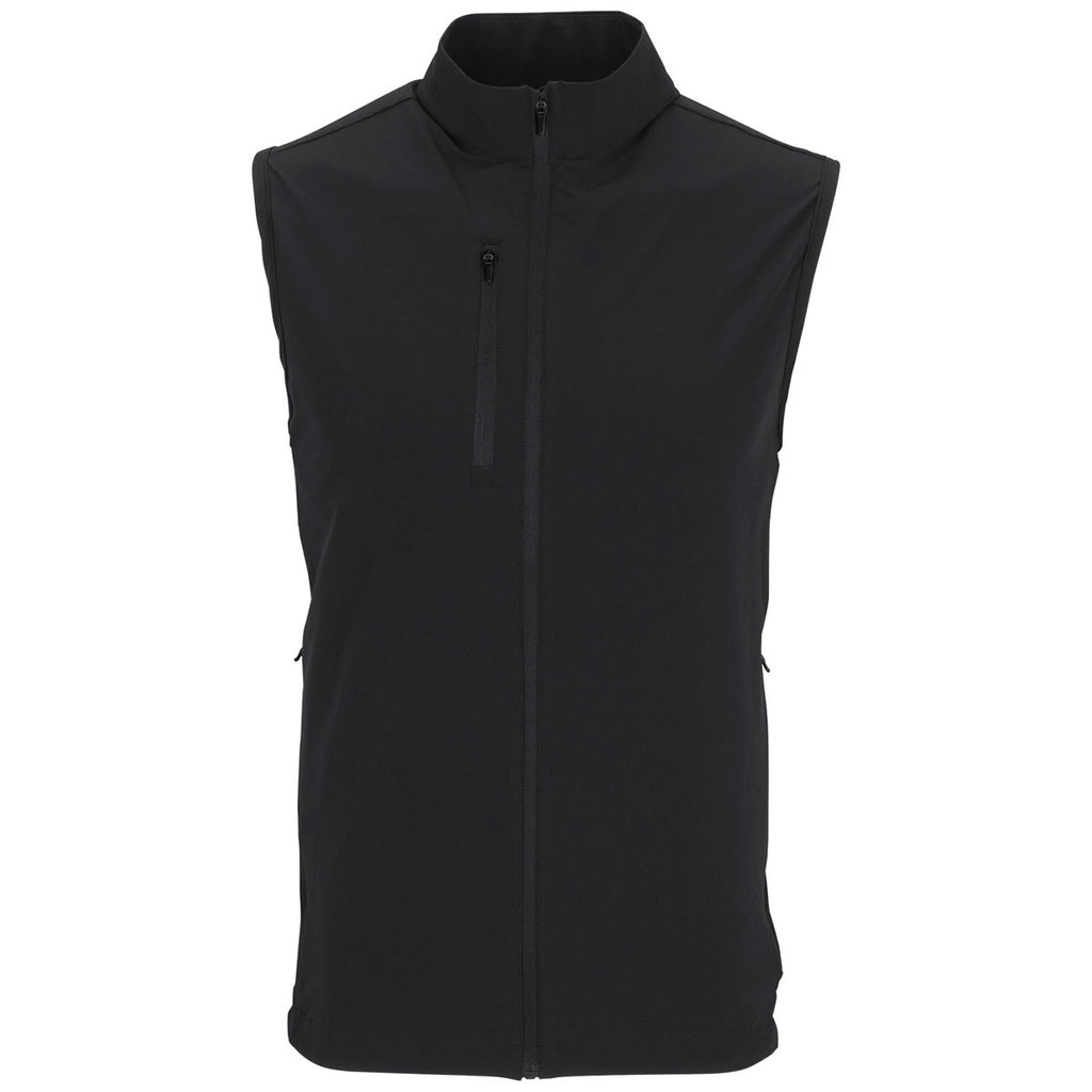 Add embroidery to the Greg Norman Men's Black Windbreaker Full-Zip Vest for a unique look that will benefit any logoed apparel line. This streamlined vest is the perfect solution to wind and rain when it is warm outside. This full-zip vest is made of a polyester rich spandex blend so it will not restrict movement whether you are playing golf or wearing it as part of employee apparel. The water repellant finish has a full front zip with inner storm flap and chin guard with adjustable even hem bottom. A right chest pocket is great for a score card and other small items.Corresponding Women's Style: Greg Norman Women's Black Windbreaker Full-Zip Hooded Vest
