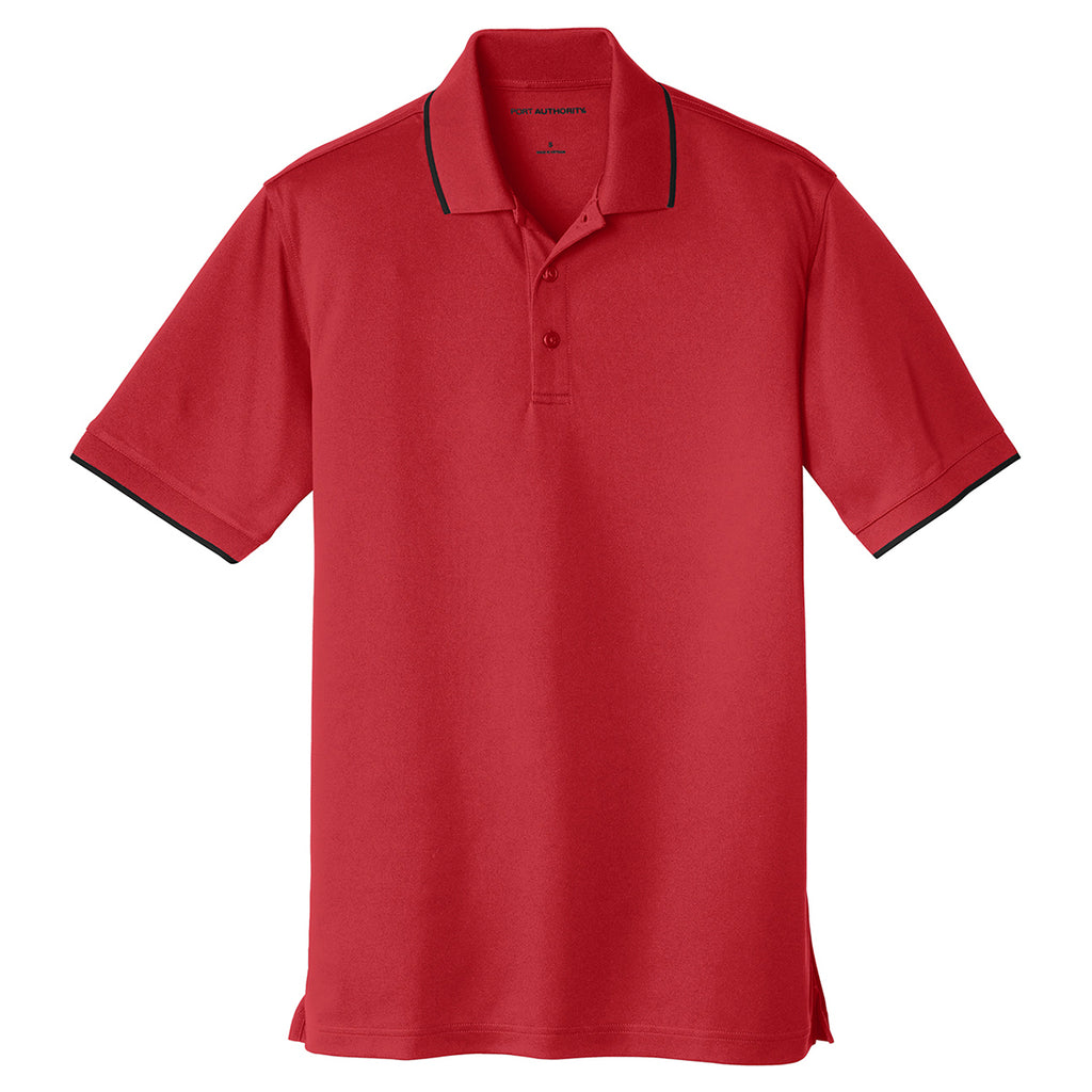 The Port Authority Men's Rich Red/Deep Black Dry Zone UV Micro-Mesh Tipped Polo is a new spin on the classic corporate polo. Attach your company logo on the large imprint area to increase awareness of your products and services in the community. One-hundred percent polyester resists the types of rips and tears that send other styles of corporate polos to a Goodwill donation bin. Moisture wicking technology ensures you remain comfortably cool throughout the day. The highly breathable mesh polo also prevents dangerous UV rays from harming exposed skin.Highlights