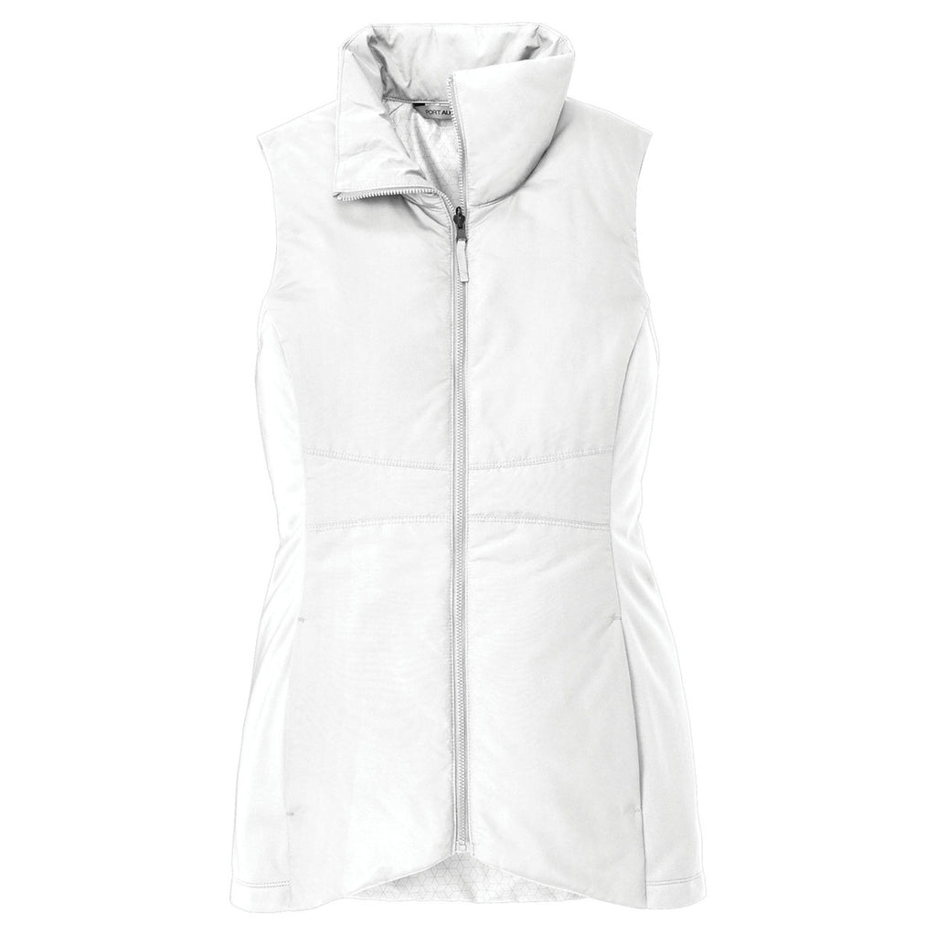 Change the way your team views winter apparel by ordering the custom logoed Port Authority Women's White Collective Insulated Vest. The 100% polyester woven shell resists the types of rips and tears that end the product lives of other styles of winter vests. Water resistant film insert prevents moisture from dampening a day of fun activities outdoors. Micro fleece lining at the side panels and under the arms ensures every inch of the jacket offers protection against colder temperatures. Attach your company logo on the large imprint area to spread the word about your brand.Highlights