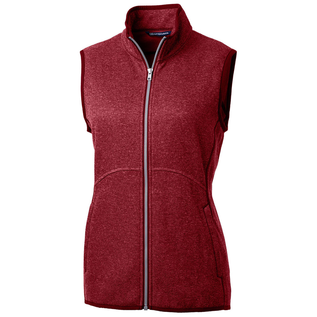 Cutter & Buck Women's Cardinal Red Heather Mainsail Sweater Knit Full Zip Vest