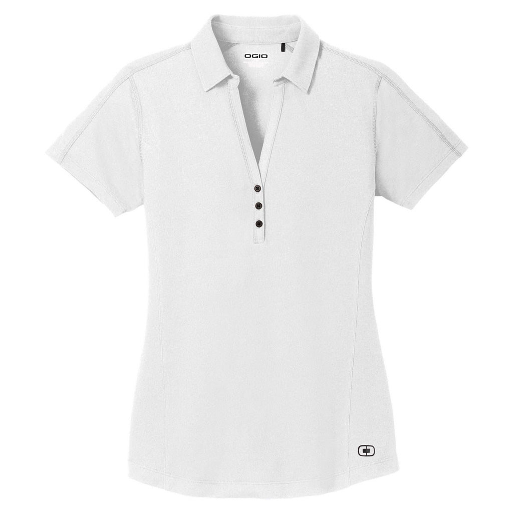 Sleek, stylish, and sexy-if ever a shirt inhabited the "three S's" that make women's polos so attractive, the OGIO Women's White Onyx Polo would be that shirt. Of course, it's not really complete until you add your custom logo onto the front with our embroidery process. That way you can use these polo shirts as corporate giveaways, prizes, and even uniforms. With a tag-free design and enough comfort to last you all day, there are very few who would object to that. Our other favorite features? The same-color details, the curved hem, and modified raglan sleeves for a unique fit. A cotton-rich polo that pushes the envelope with moisture-wicking performance and modern details.