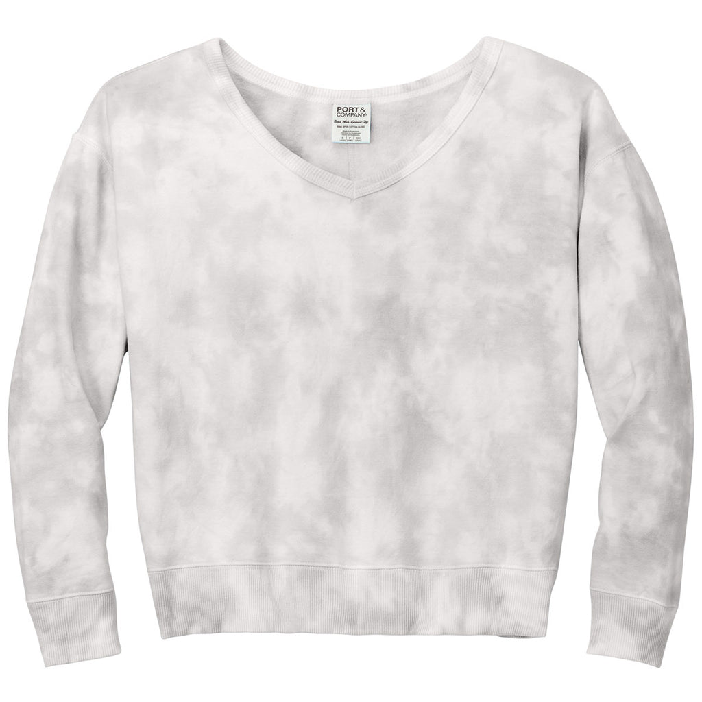 Port & Company Women's Dove Grey Beach Wash Cloud Tie-Dye V-Neck Sweatshirt