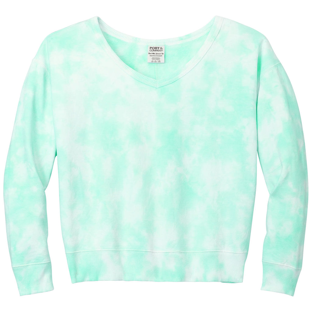 Port & Company Women's Cool Mint Beach Wash Cloud Tie-Dye V-Neck Sweatshirt