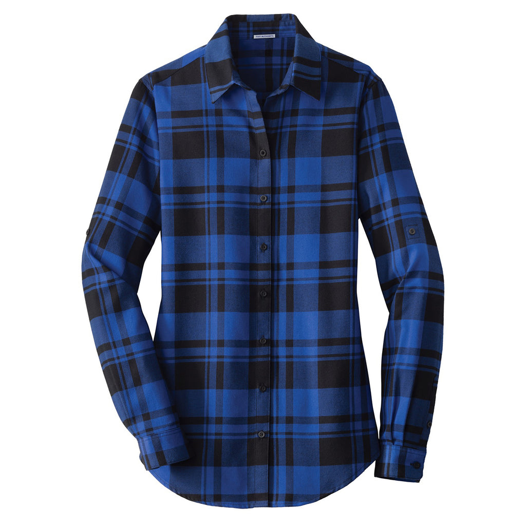 Port Authority Women's Royal/Black Plaid Flannel Tunic