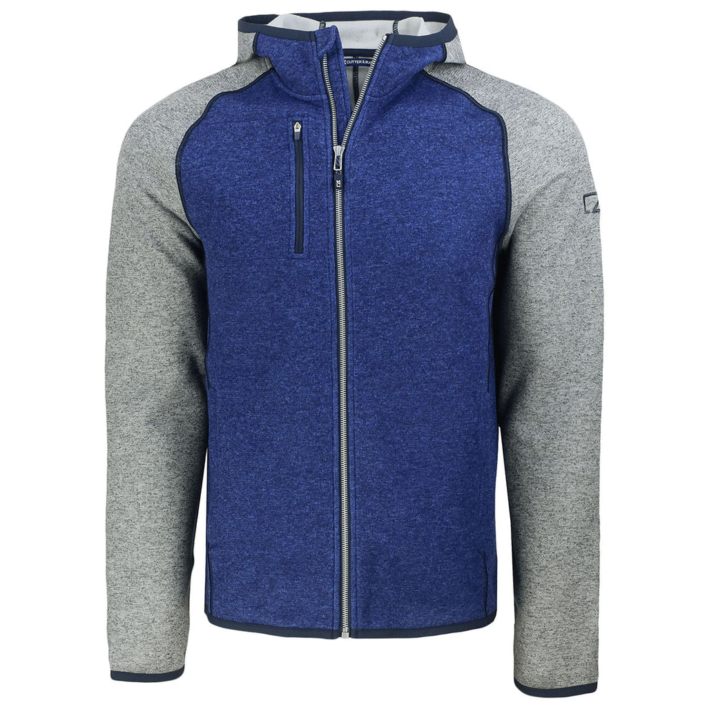 Cutter & Buck Men's Tour Blue Heather/Polished Heather Mainsail Full Zip Hooded Jacket