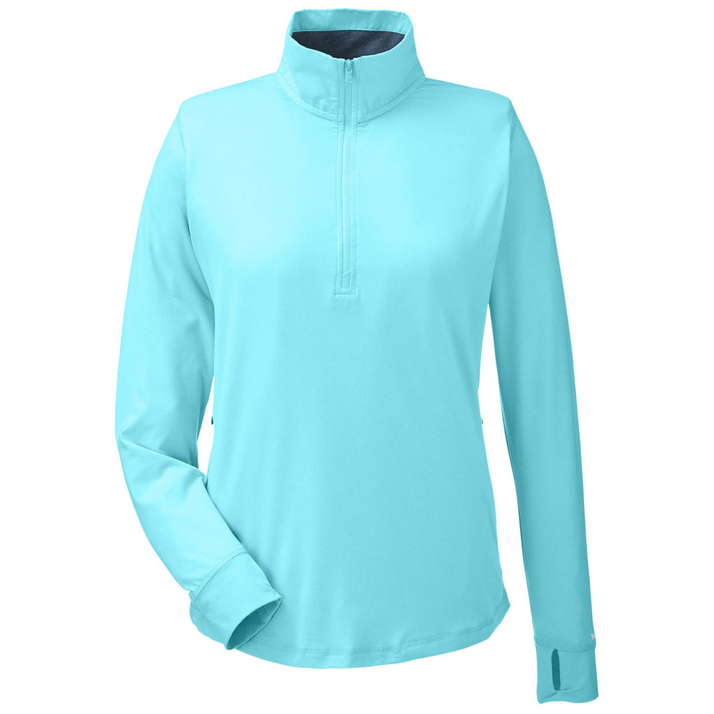 Add embroidery to the Nautica Women's Sea Mist Saltwater Quarter-Zip Pullover for a fun and fashionable look that is ready for fun. The sleek polyester blend with 40+ UPF protection is great for golf, tennis, or outdoor yoga. A simple micro locker loop makes this easy to hang when not in use. Place an order today.Highlights