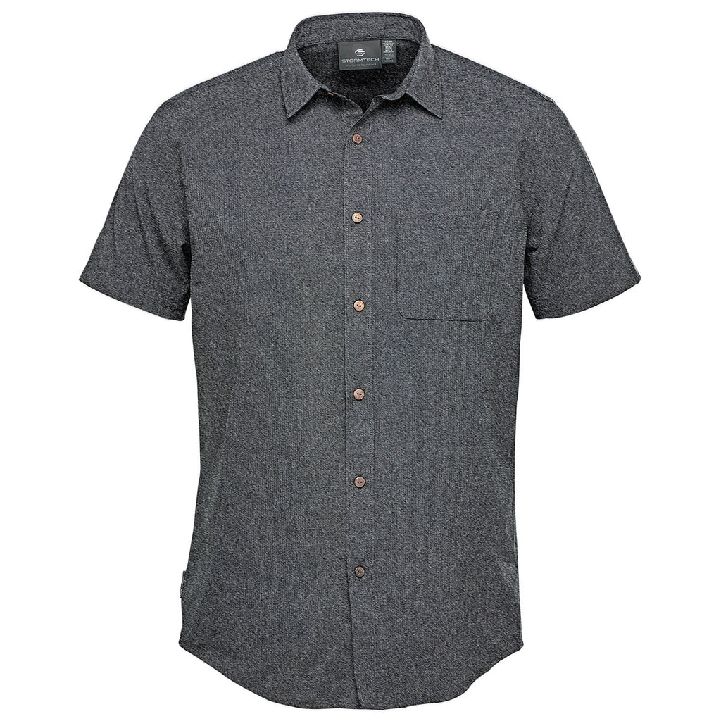Add embroidery to the Stormtech Men's Heather Grey Azores Quick Dry Shirt for the perfect choice whether at work of play. The short sleeve button up is the ideal canvas for a custom logo to allow these to be given as gifts or to add to your logoed apparel line. Add a company logo to use as employee apparel that will be easy to clean, lightweight, and contoured for comfort. The easy to layer shirt can be worn alone or paired with a jacket for a more corporate look overall.Corresponding Women's Style:Stormtech Women's Heather Grey Azores Quick Dry Shirt