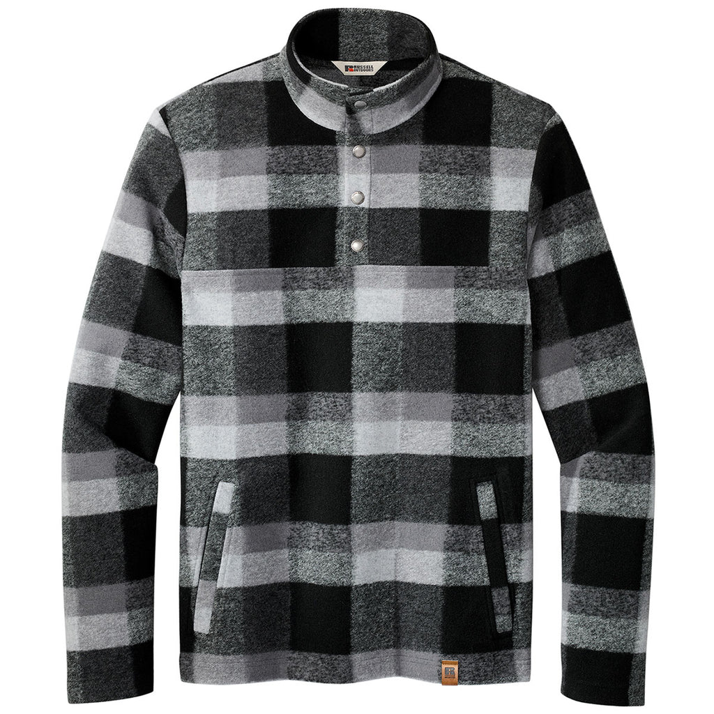 It doesn't matter if you're getting active outdoors or want to stay warm on your morning commute - the Russell Outdoors Men's Deep Black Plaid Basin Snap Pullover has got you covered. Keep your team comfortable even in cold, inclement weather conditions by adding your company's custom logo to this heavy layering piece.