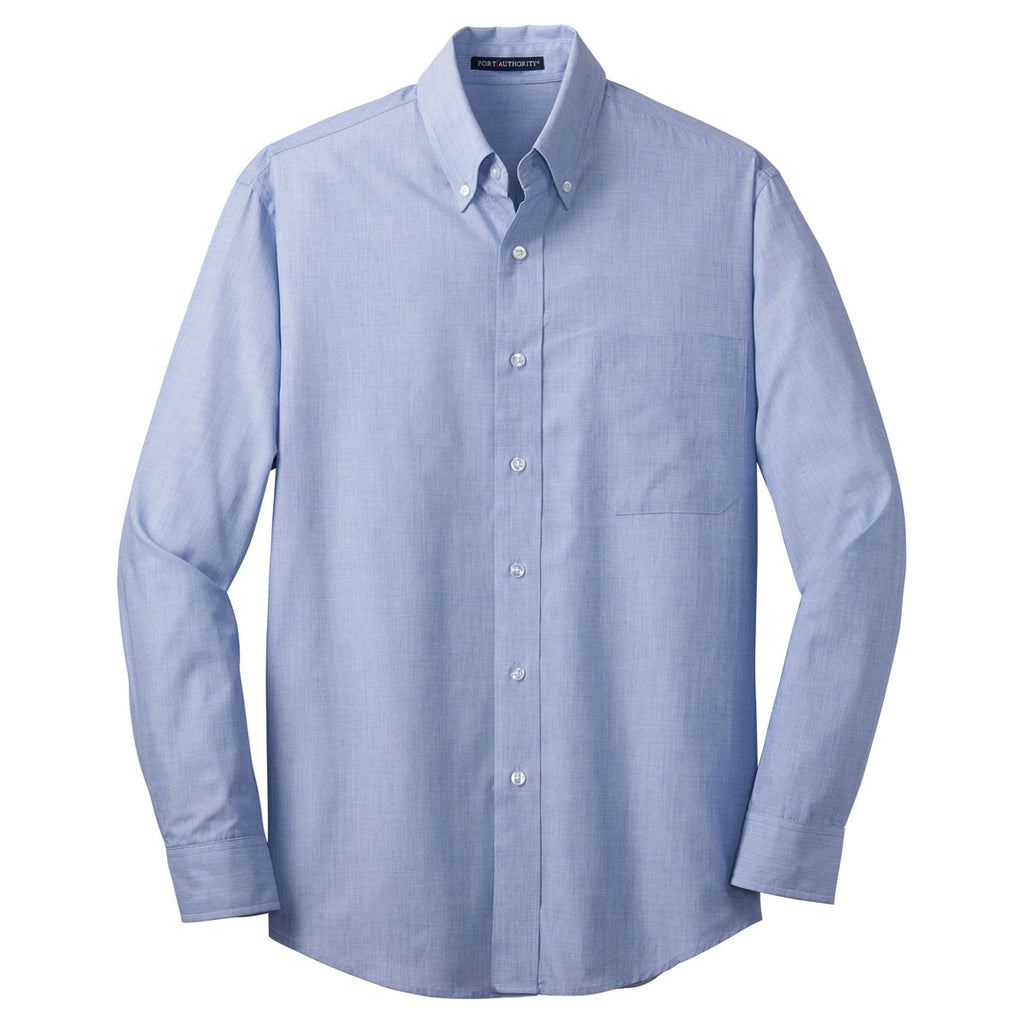 Dress shirts should be three things: stylish, comfortable, and professional. The Port Authority Men's Chambray Blue Crosshatch Easy Care Shirt fits all three. In fact, you'll find that these goals very much line up with your corporate goals, which is why this shirt is perfect for matching a sense of style with your individual brand. Create your business apparel by using our embroidery process to affix your logo to this shirt.Corresponding Women's Style: Port Authority Women's Chambray Blue Crosshatch Easy Care Shirt