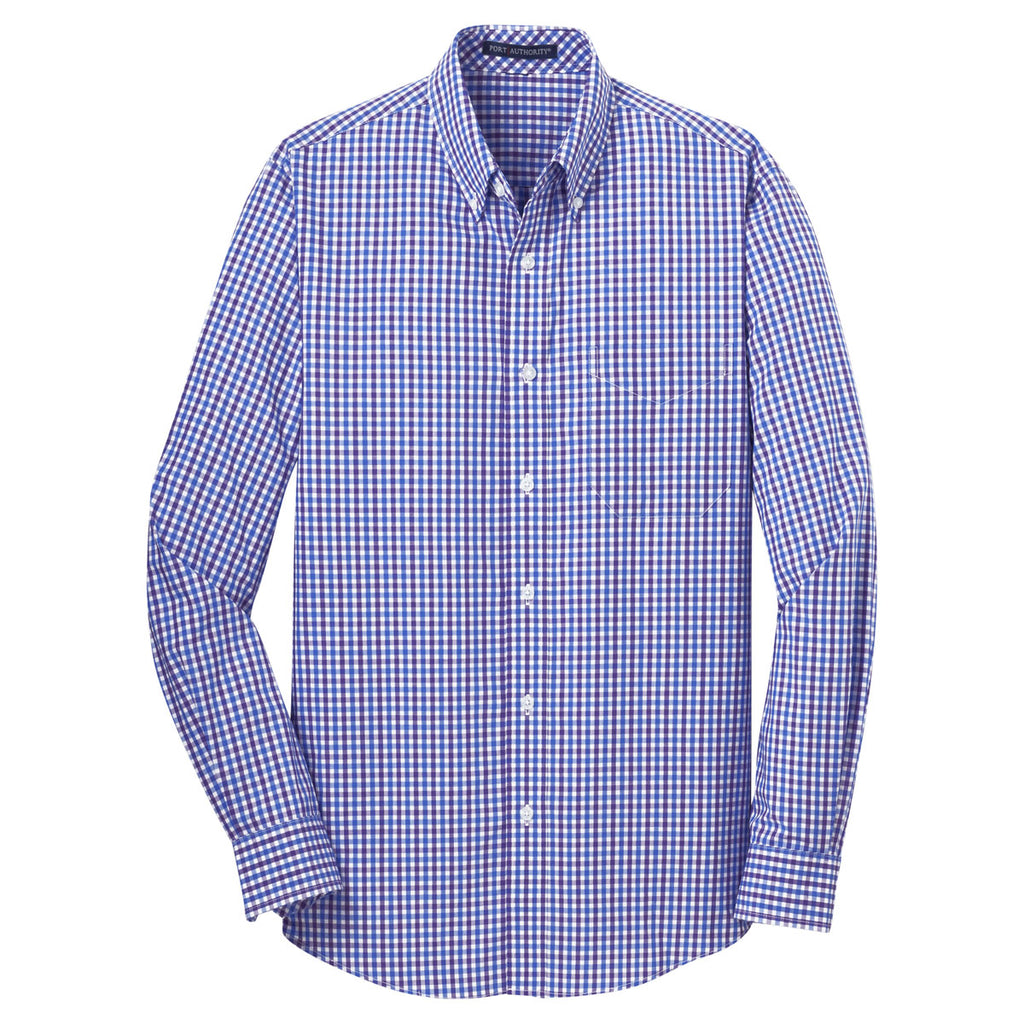 Port Authority Men's Blue/Purple Long Sleeve Gingham Easy Care Shirt