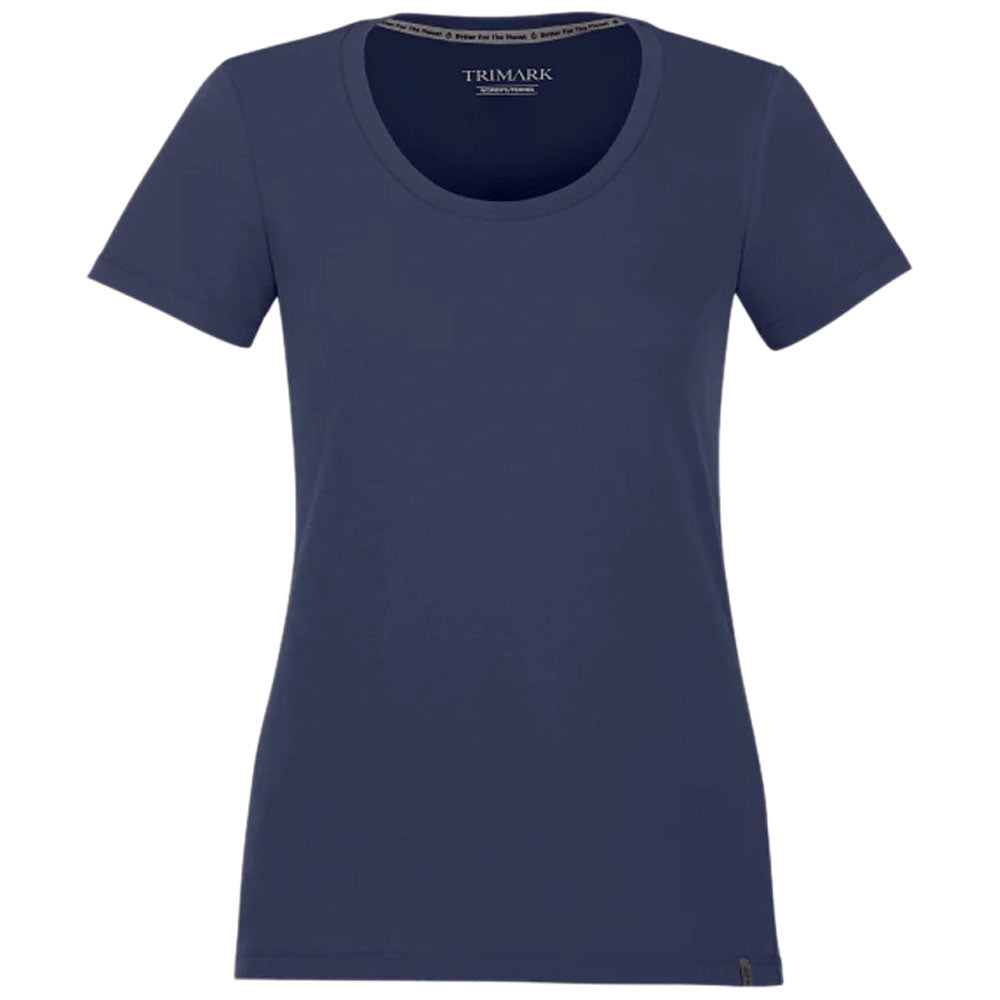 Enjoy a custom look with the Elevate Women's Vintage Navy Somoto Eco Short Sleeve Tee. The versatile tee is comfort, easy to wear, and eco-friendly with recycled materials. Great to wear alone in warmer weather or layer with a hoody or jacket, the short sleeve tee can sport your embroidery with ease and style. Place an order today.Corresponding Men's Style: Elevate Men's Vintage Navy Somoto Eco Short Sleeve Tee