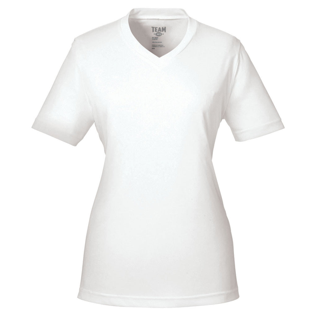 Whether you need a high-performance t-shirt for a workout or a stylish t-shirt to wear at a casual party, you can't go wrong ordering the Team 365 Women's White Zone Performance T-Shirt. Moisture wicking technology quickly removes the perspiration that builds up on a golf course. Ultraviolet ray protection performance enables to work outdoors for hours on end. One-hundred percent rugged polyester resists rips and tears to keep you looking fashionable for years to come. The athletic fit creates a dignified appearance that will turn heads. Now that you have everyone's attention, display the custom logo you added to the large imprint area.Corresponding Men's Style: Team 365 Men's White Zone Performance T-Shirt