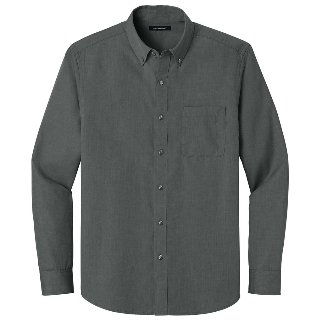 Port Authority Men's Deep Black Long Sleeve Nailhead Easy Care Shirt offers a thoughtful, custom look with minimal upkeep. Its nailhead texture adds visual interest, while the easy-care fabric makes maintenance simple. Whether in the office or attending a casual event, this shirt provides a professional yet laid-back style that's both comfortable and practical.Highlights