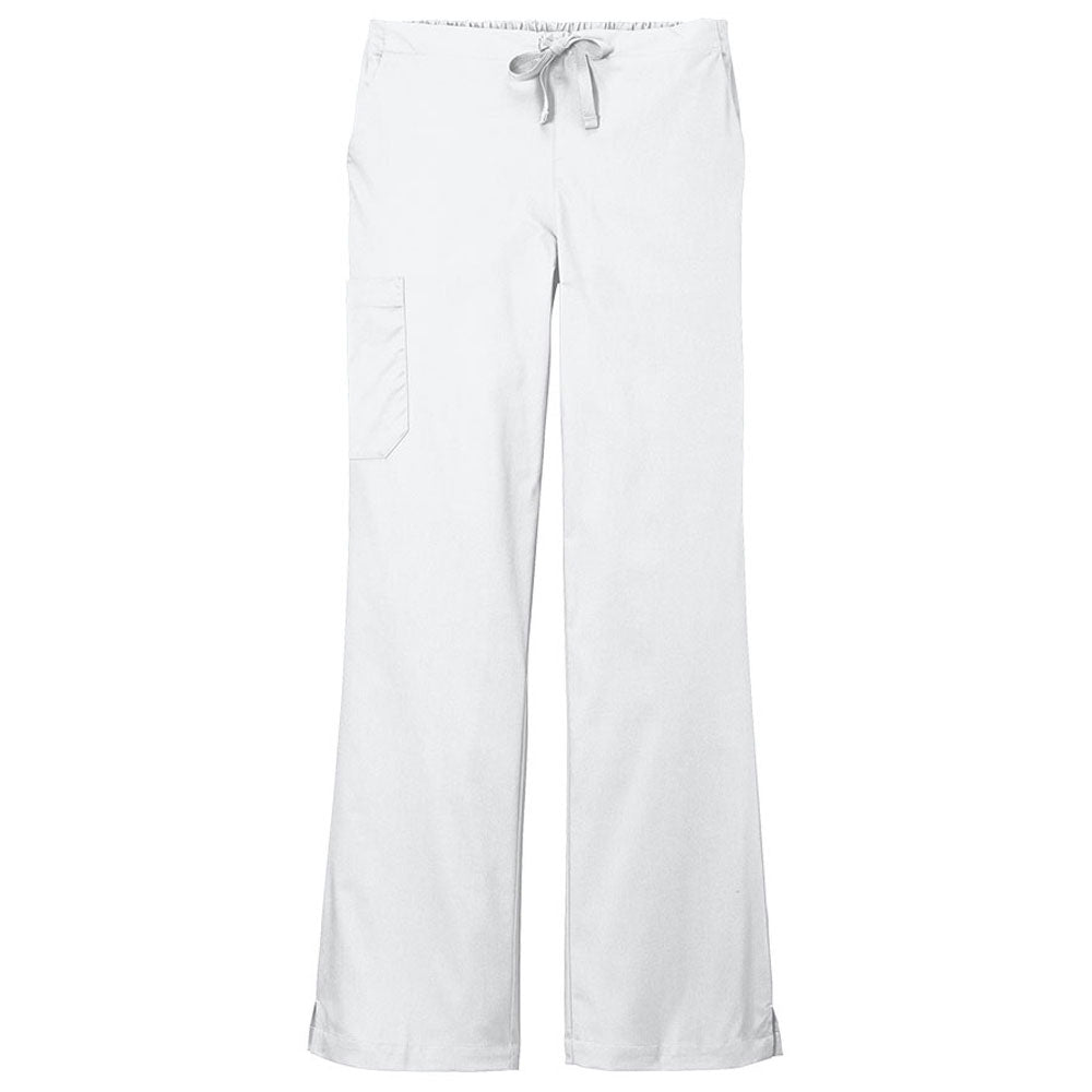A slightly wider leg makes the WonderWink Women's White WorkFlex Flare Leg Cargo Pant a comfortable option for the ladies on your team. Designed for healthcare professionals, they're made from a mechanical stretch fabric that is exceptionally easy to move in. Add your company's custom logo to create a stylish uniform look.