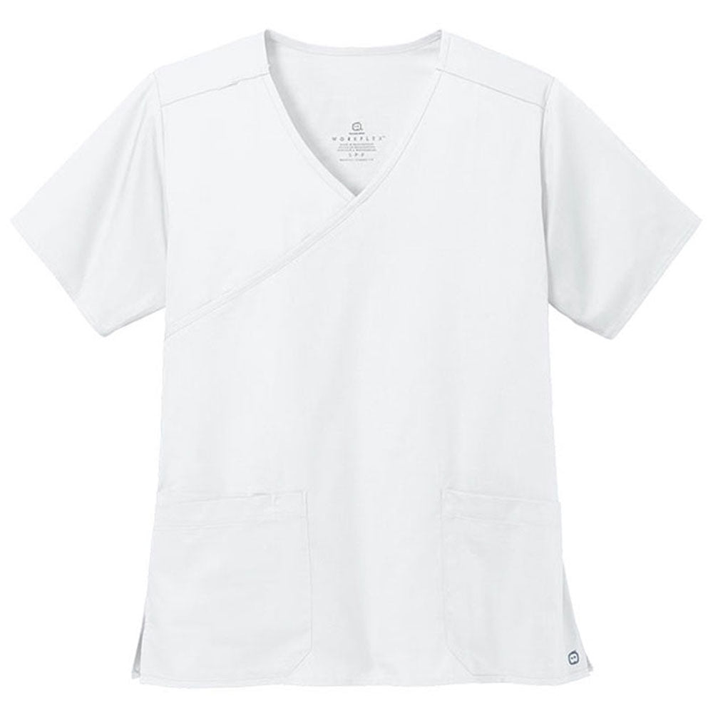 WonderWink Women's White WorkFlex Mock Wrap Top