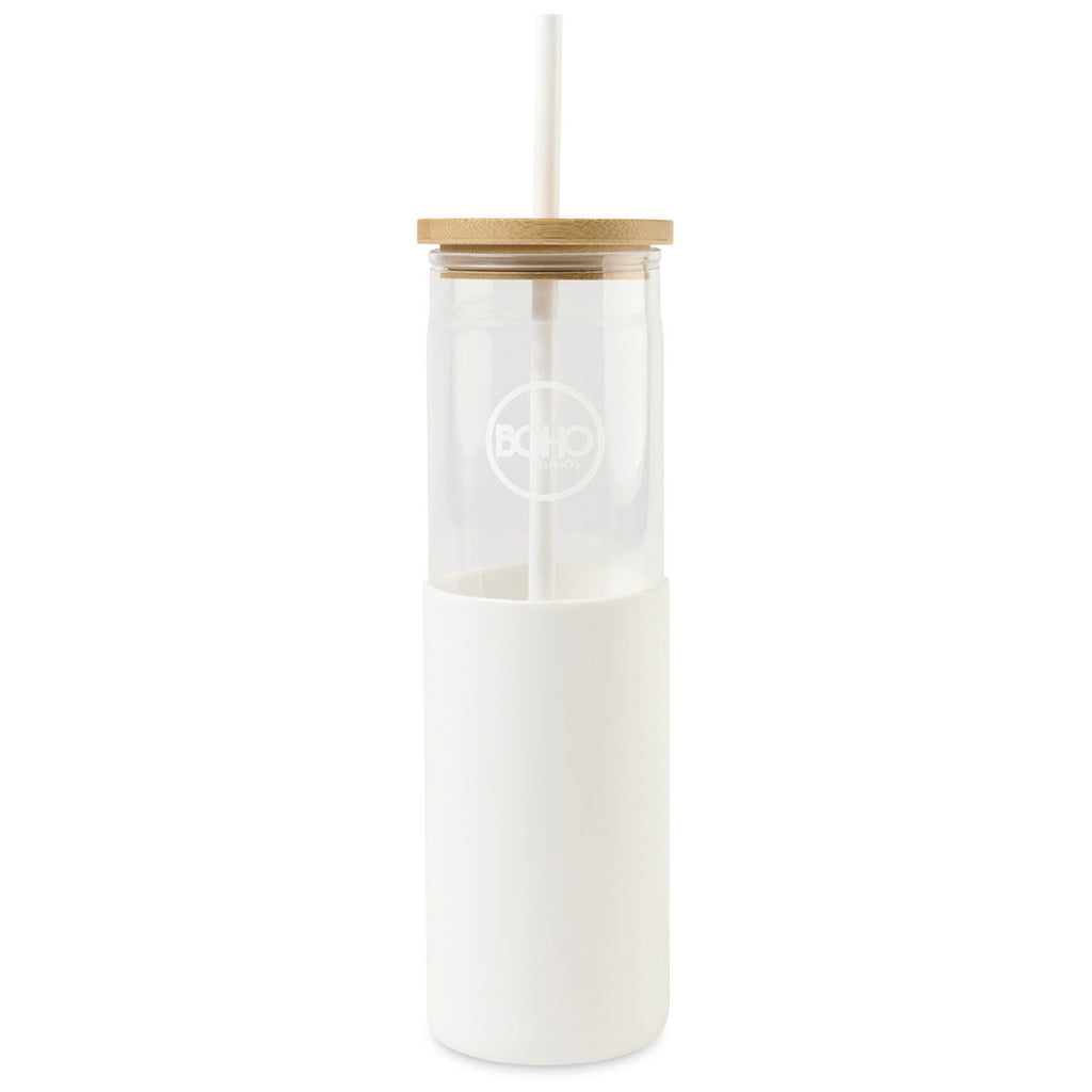 This chic Aviana White Journey Tritan Tumbler with Straw - 20 Oz is an on-trend tumbler that will make your company's custom logo look better than ever. Great for taking water or iced coffee with you on the go, details like the bamboo lid, reusable plastic straw, and silicone sleeve come together in perfect harmony.