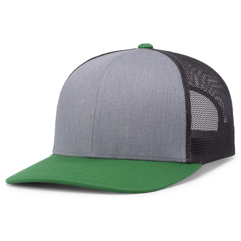 Pacific Headwear Heather Grey/Lt Charcoal/Green Snapback Trucker Mesh Cap