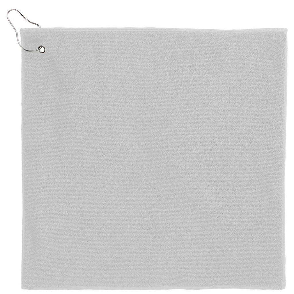 The custom Leed's White 15" x 15" RPET 300g Terry Polyester Towel is compact and convenient for all the golfers in your life. The easy-to-store, soft terry polyester towel provides gentle cleaning for your clubs, wiping sweat, or anything you need while on the course. The metal grommet and hook mean you can hook this to your bag and be on your way.The minimum order for this product is 250 pieces.