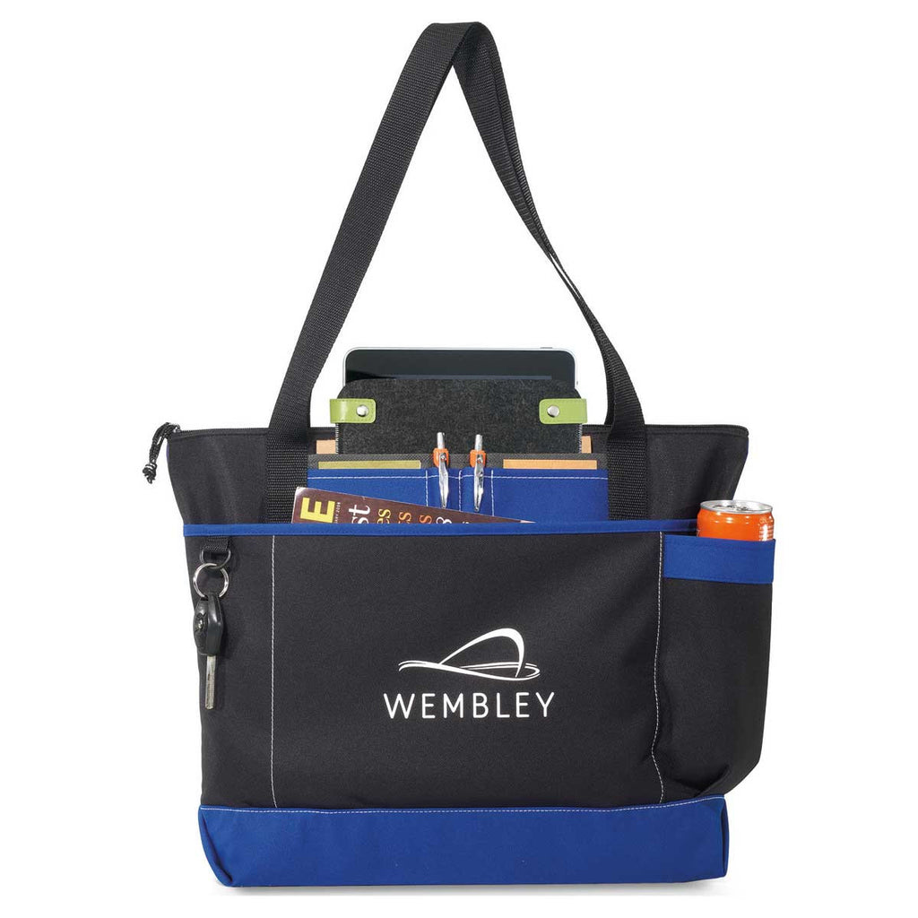 You have a lot to do, and not much time in which to do it. There are errands to run, people to see, and you have no idea how you're going to get everything you need from Point A to Point B in a hurry. Fortunately, there's an invention for just such a problem: the Gemline Royal Blue Avenue Business Tote. Specifically, this Tote is perfect for handling those everyday tasks while keeping you mobile. Simply add everything you need to the tote, head out on the road, and you're ready to conquer the day. Now just add your custom logo to this tote to make sure that people can rep your brand everywhere they go. The minimum order for this product is 50 pieces when decorated.Highlights