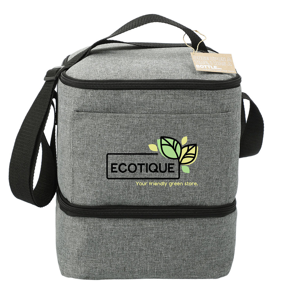 Your employees will love owning a Leed's Graphite Tundra Recycled Lunch Cooler that features your company's custom logo or design. Inside of this insulated lunch container, you'll find a PEVA lining that easily wipes clean. A zippered compartment at the bottom is designed to hold a bento box or anything else you want to keep separate.The minimum order for this product is 48 piece.