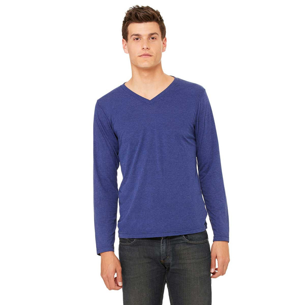 Bella + Canvas Unisex Navy Triblend Jersey Long-Sleeve V-Neck T-Shirt