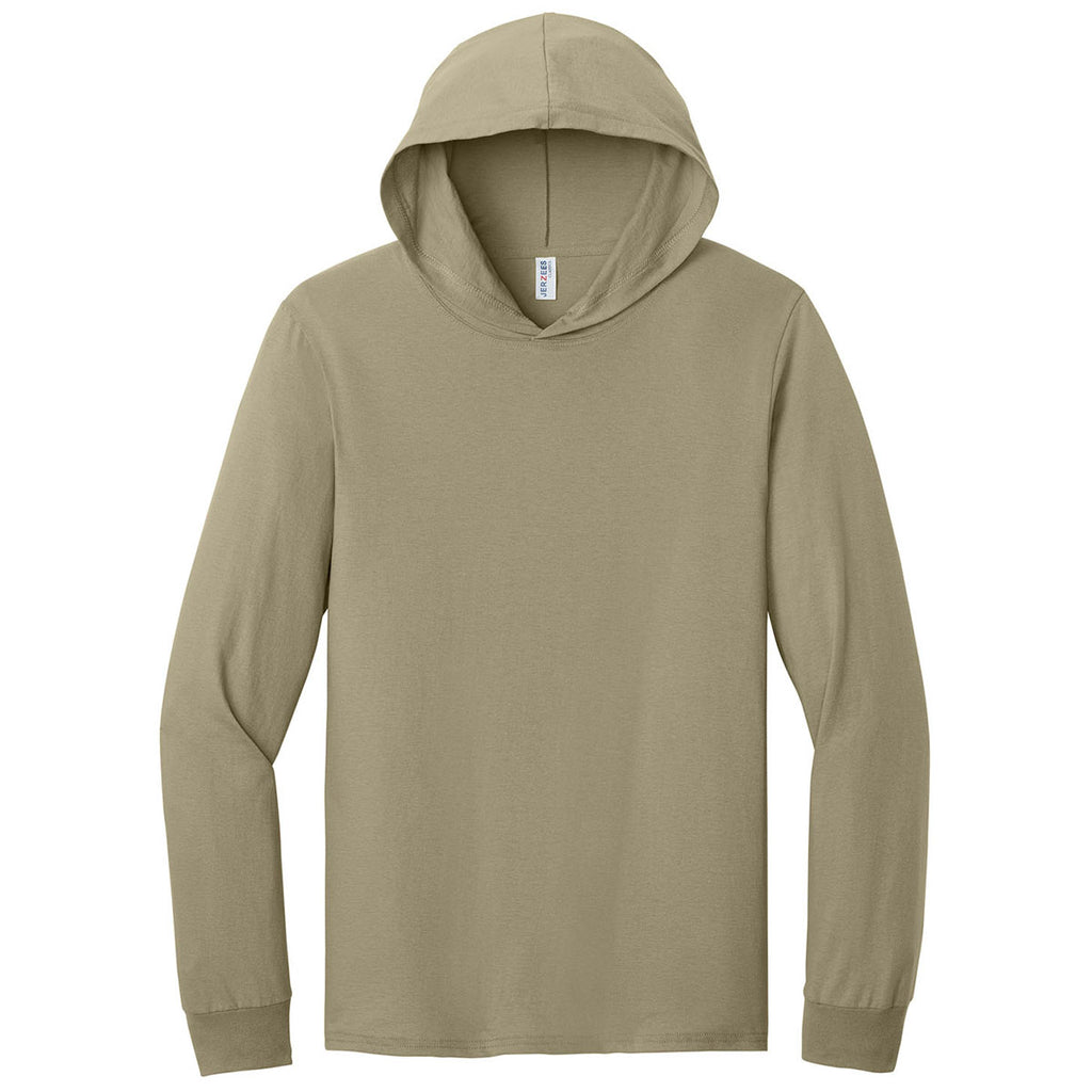 Jerzees Classics Unisex Khaki Cotton Long Sleeve Hooded T-Shirt with a custom logo delivers a laid-back yet durable design. Soft cotton fabric provides ultimate comfort, making it perfect for casual outings or layering in colder weather. The hood adds extra warmth and versatility, while the long-sleeve style is ideal for a relaxed yet stylish look that never goes out of fashion.Highlights