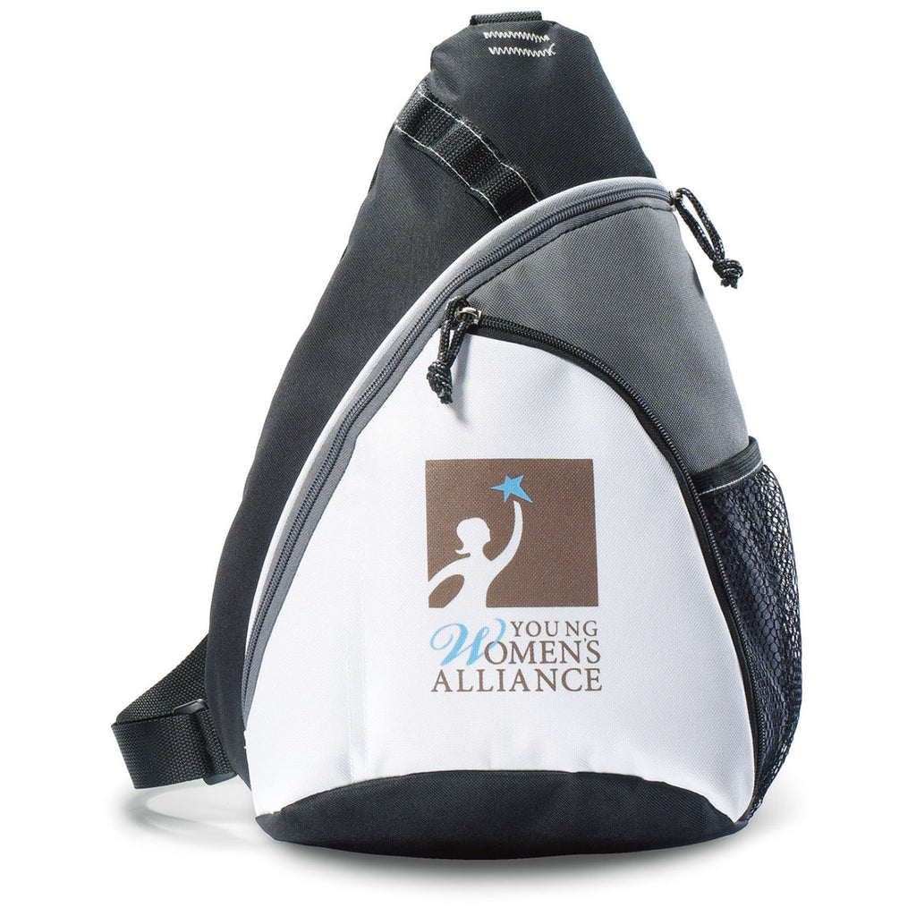 Head out for some fun with a custom Gemline White Wave Sling Bag made of strong denier polyester. The two zippered compartments, adjustable shoulder strap, and side mesh pocket make this bag convenient for shopping, hiking, or finding adventure on the open road. Sling the bag over your shoulder, hop on your motorcycle, and leave your worries behind. Order today.