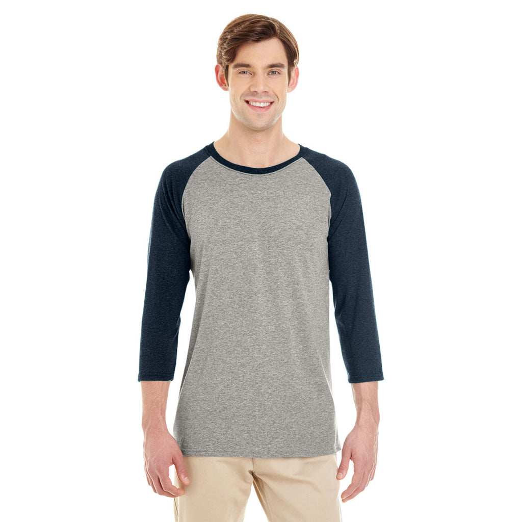 Jerzees Men's Oxford/Indigo Heather 4.5 Oz Tri-Blend Baseball Raglan
