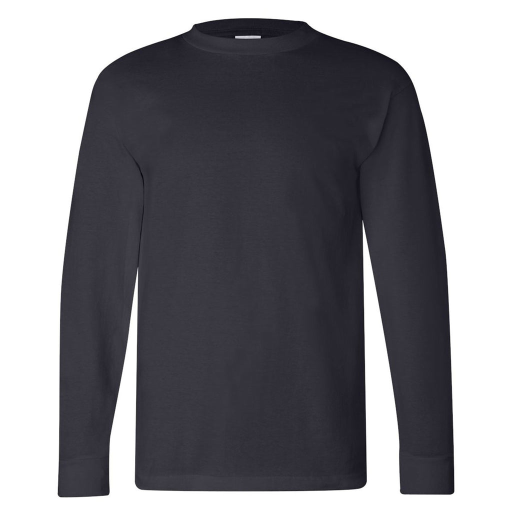 The Bayside Men's Navy USA-Made Long Sleeve T-Shirt, with your company's custom logo, would look great on your employees whether they're at work or at play. This 100% cotton T-Shirt is available in a wide assortment of colors, so your logo would blend in no matter its color or design. You could order a batch of these long-sleeve shirts as company uniforms for your service or delivery workers out in the field. Or they'd work well as uniforms if your company takes part in corporate sports leagues. These shirts are also suitable for company events such as trade shows.Highlights