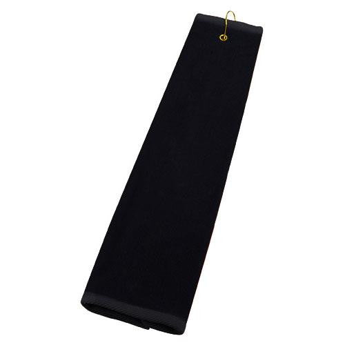 Manufactured with 100% plush cotton velour, the Black Golf Tri-Fold Towel makes an excellent addition to your golf accessories. The rugged material allows you to keep your golf balls and clubs dry throughout an entire round. You can wash and dry the towel countless times and never see the colors fade or the fabric tear. The durable metal grommet and hook attach to your golf bag or if you choose. Attach your corporate logo to take your brand to the next level.