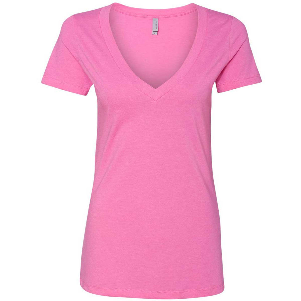 Adding another plain ol' crewneck tee to the outfit isn't always exciting. If you've ever agreed with that statement, perhaps it's time to switch to this Next Level Women's Hot Pink CVC Deep V Tee. Not only does it offer a degree of style that you can't get with the usual tee, but it has all the comfort and carefree attitude of a crewneck. If only all shirts could give you an added layer of interest in your outfit without feeling like they added another layer of discomfort as well. But thankfully, v-necks like this can rescue a drab wardrobe in a hurry. With Merchology, you can add a custom logo to take this v-neck to the next level.
