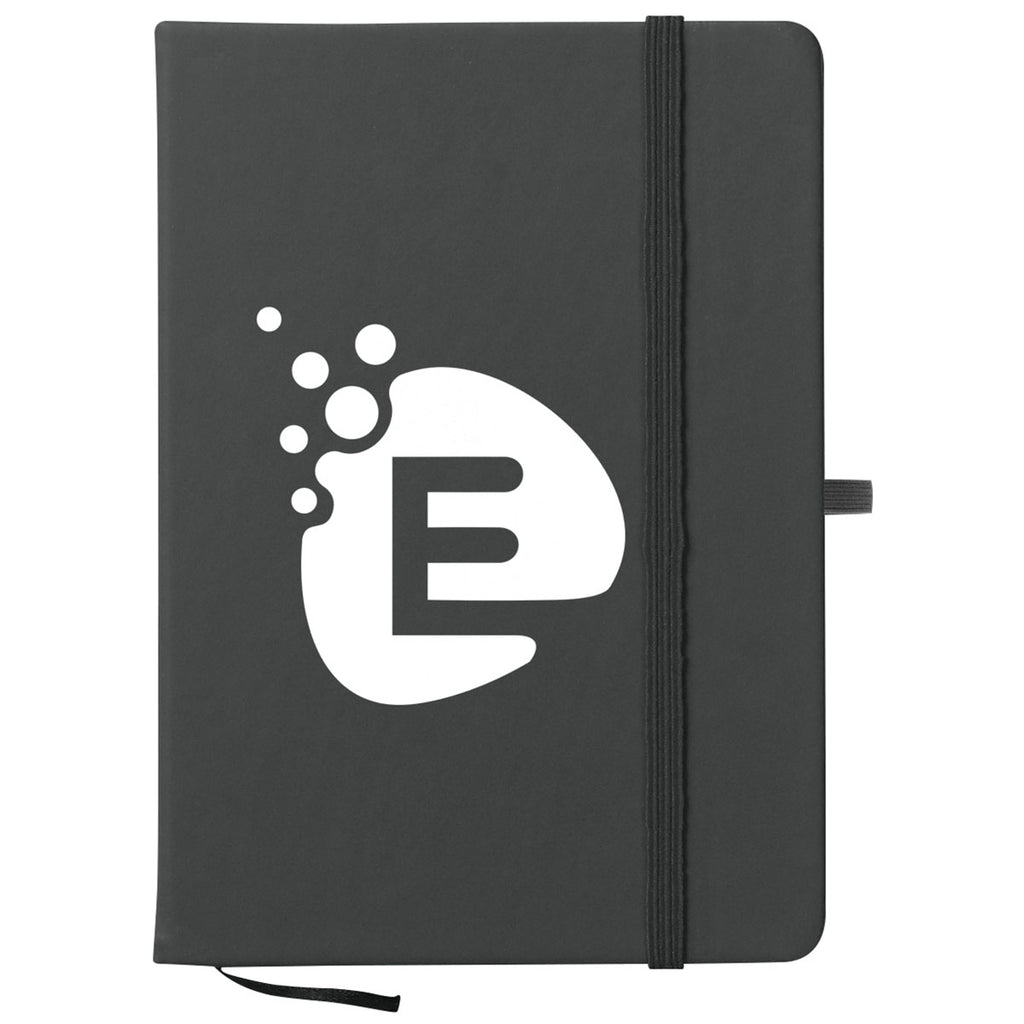 The Hit Black Journal Notebook with a custom logo will be an instant Hit for those who like to keep their thoughts on paper. The 80 page notebook is lined for easy tracking of your journal entries. A polyurethane cover means this notebook can be used repeatedly with the matching bookmark, strap closure, and pen loop to help with organization.