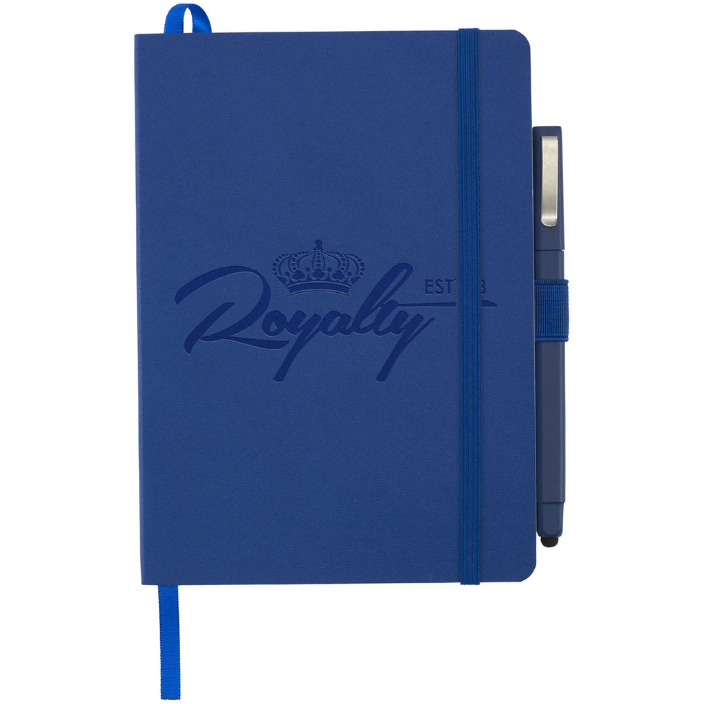 - Pricing includes one logo debossed or one color print on notebook. As well as one color logo printed on stylus.