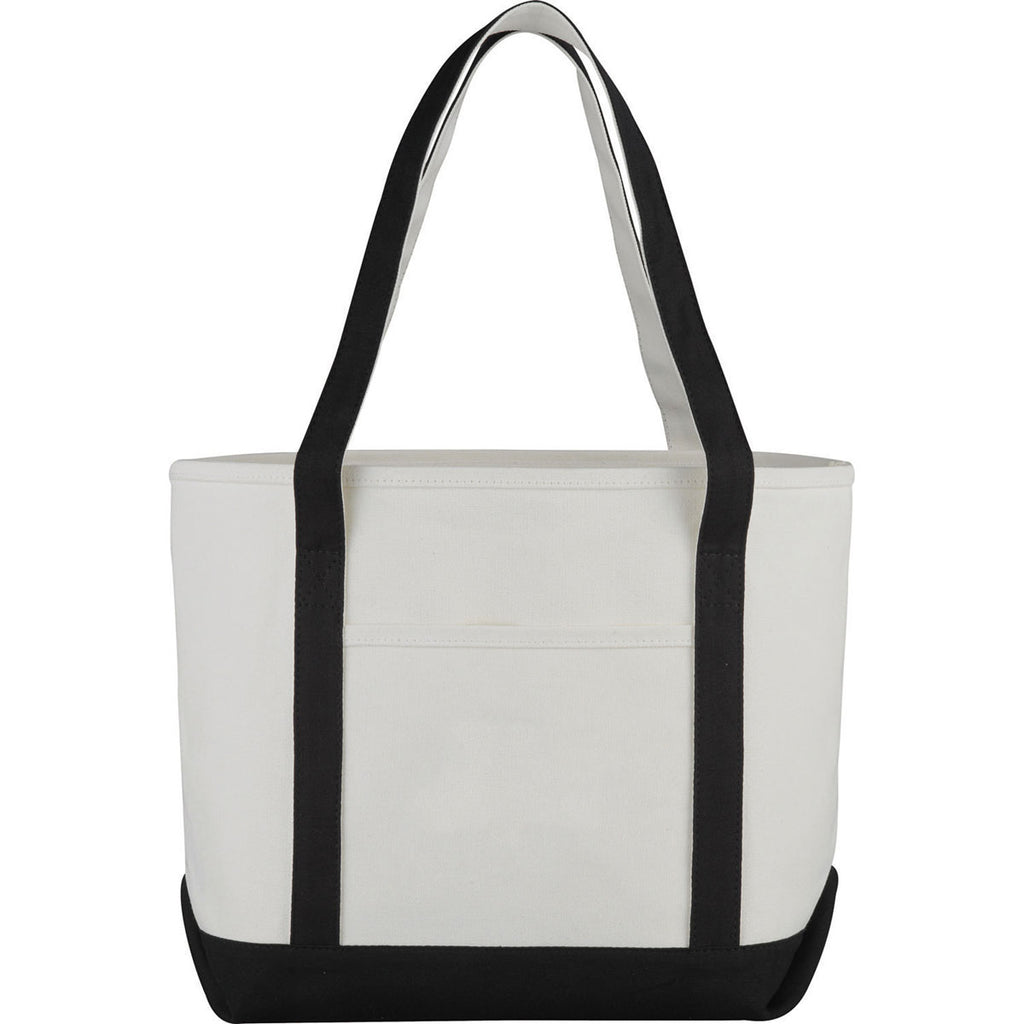 Your custom logo will pop when added to the eye-catching Leed's Black Cotton Canvas Premium Boat Tote 18 oz. The classic two-tone design of this boat tote is sure to catch people's attention when carried at trade shows, while traveling, or to and from everyday destinations. Recipients will appreciate the large main compartment, generous handle, and heavy weight material for durability.The minimum order for this product is 50 pieces.